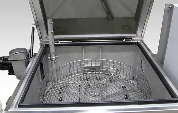 | Beschickung: | Beladung von oben, manuell oder per Kran, herausnehmbarer, Beladekorb |